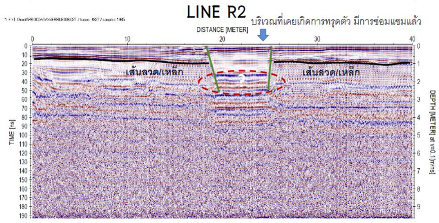 GPR radar depth survey was used to find the changes in the soil layers that constitute the foundation surface.