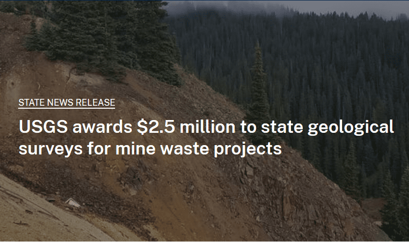 USGS Awards $25 Million to State Geological Surveys for Mine Waste Projects, Geophysical Technologies Aid in Mineral Exploration and Environmental Protection