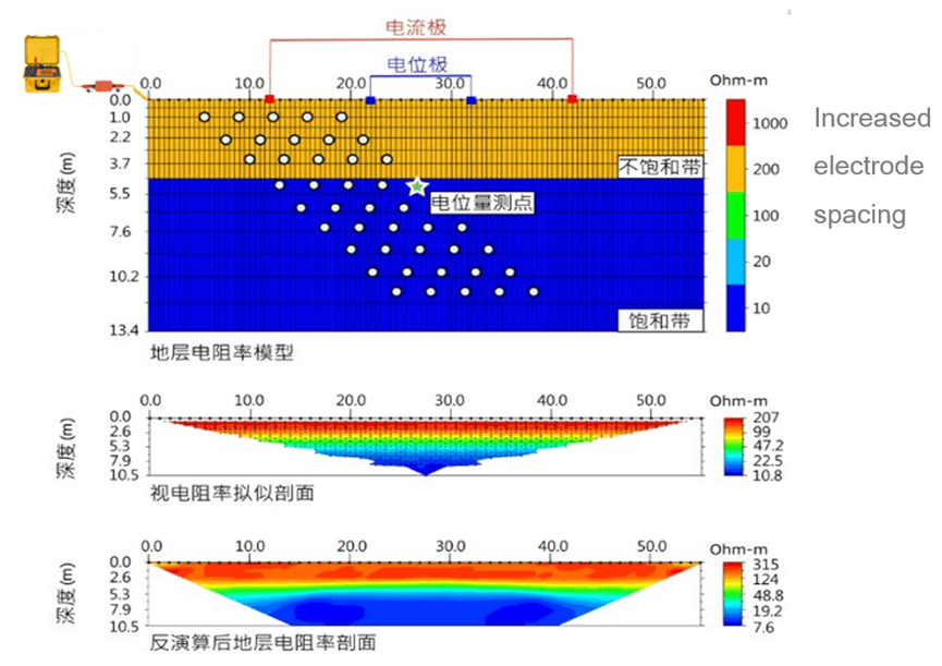 - Dual-mode resistivity and induced polarization (IP) measurements with self-potential compensation, supporting 1D/2D/3D/4D exploration.
