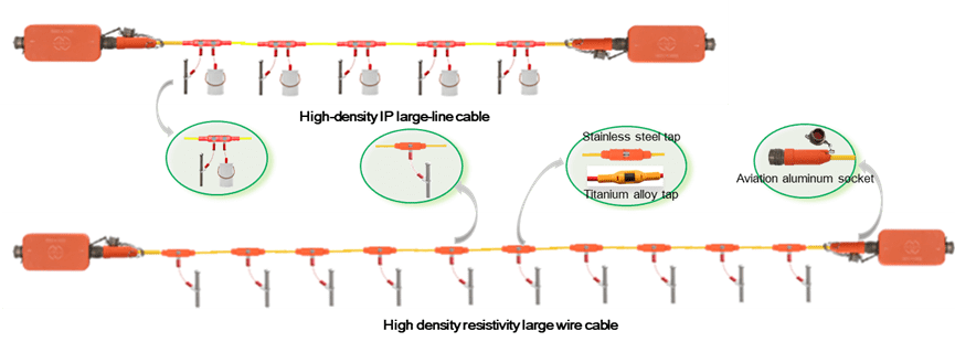*GIM-5 High-density IP System (5 channels): 2D and 3D high-density resistivity and IP imaging system, using a unique segmented centralized distributed wiring method, which can replace all the above models in terms of function, and uses a double-tap IP cable.