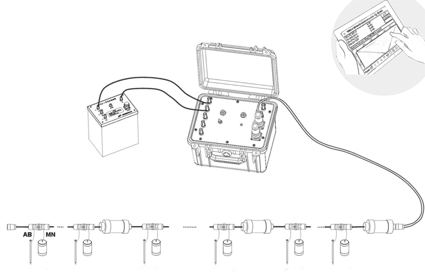 - Combination 2:Centralized single channel 2D resistivity measurement system